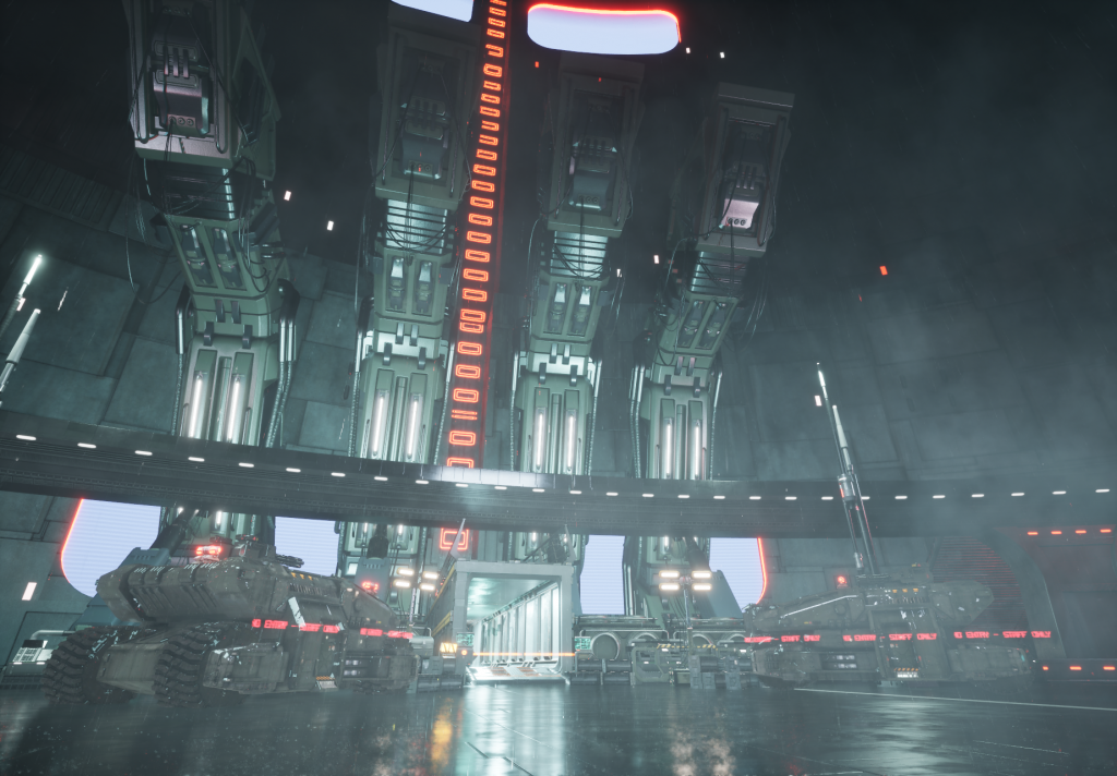 Before starting the animation , the scene design needs to be completed, which can be used as a reference for the interaction between the animation characters and the scenes. This film contains only two scenes, one of an outdoor setting at a military base and the other of an indoor setting in a laboratory. In the setting, Base 73 is a secret research facility for biological weapons in a near-future science fiction scenario. Therefore, I collected several assets with a similar style and created a military base with a metallic look, a cold and futuristic feel. I set Nullifier to appear on a rainy night, hoping to create a somber and sci-fi atmosphere.
