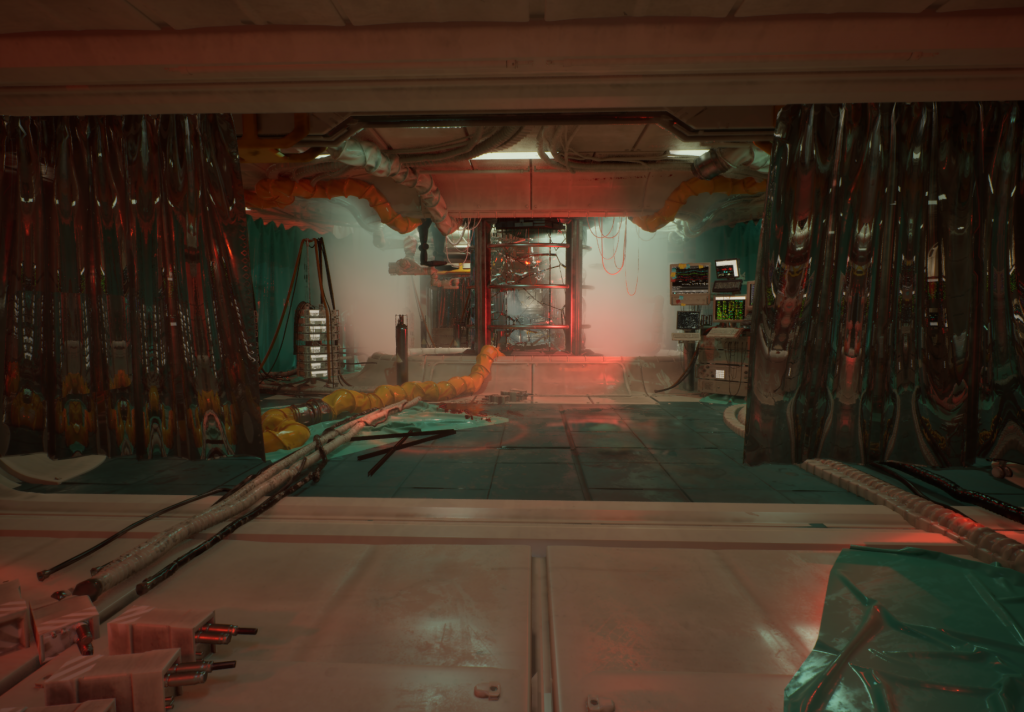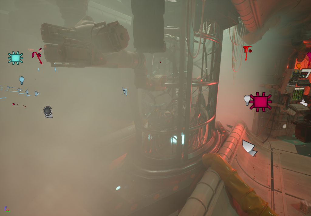 In the lab level, there are many small objects that constantly changing, such as alarm lights, mechanical arms, fog, and so on. Next, I will introduce some objects that I used in the scene which were realized through blueprints or materials.
