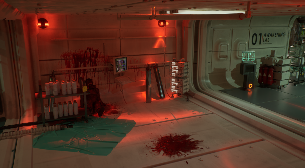 Most of the story takes place in a secret underground laboratory. In my imagination, this should be an institution that operates efficiently like a sophisticated machine. Then, after the 1942 experimental subject broke through the containment, under its brutal killing of humans, it became bloody and chaotic.