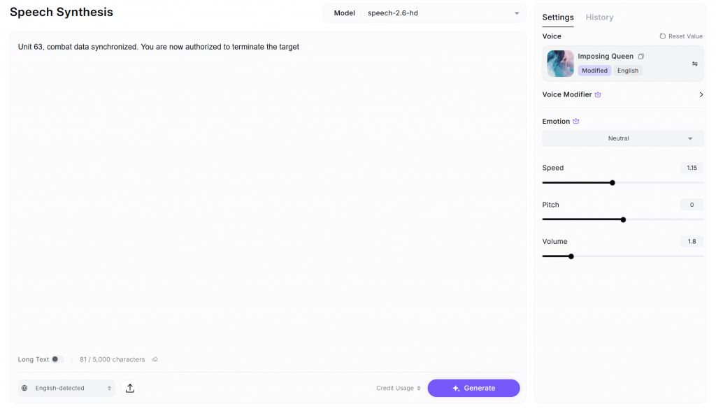Besides the sound effects, my video also had a few lines of dialogue, so I decided to use AI voice-over to read the narration I needed. After consulting with friends who specialize in sound design, I chose the MiniMax platform because its AI reading function has a good grasp of the characters’ emotions. After a period of modification and debugging, I achieved relatively satisfactory results and used it in the final video.